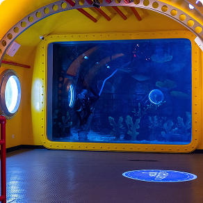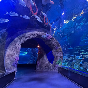 Lihat lebih dekat biota kami tepat dari atas permukaan air! Ikuti Education Guide kami yang berpengalaman menyusuri rute sepanjang 80 meter yang mengelilingi Akuarium Utama (Main Tank), sambil mempelajari rahasia dunia bawah laut. Jangan lewatkan juga kesempatan untuk memberi makan ikan-ikan kami!