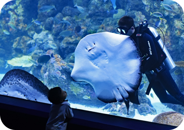 BXSea memiliki dome dan terowongan bawah air terbesar di Asia Tenggara! Membentang sepanjang 35 meter, lebar 2,4 meter, dan tinggi 2,8 meter, kagumilah keragaman ikan, hiu, pari, dan masih banyak lagi!